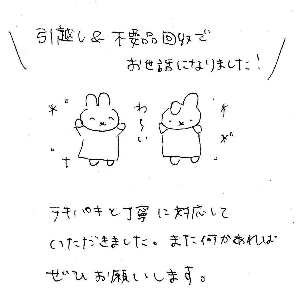 引越し&不用品回収でお世話になりました!